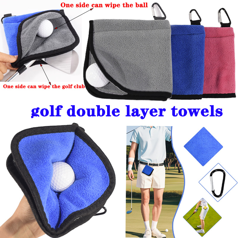 Golf Membersihkan Handuk Bola Ganda Handuk Pembersih Handuk Bola Handuk Handuk Luar Ruangan dengan Kait Lintas Batas