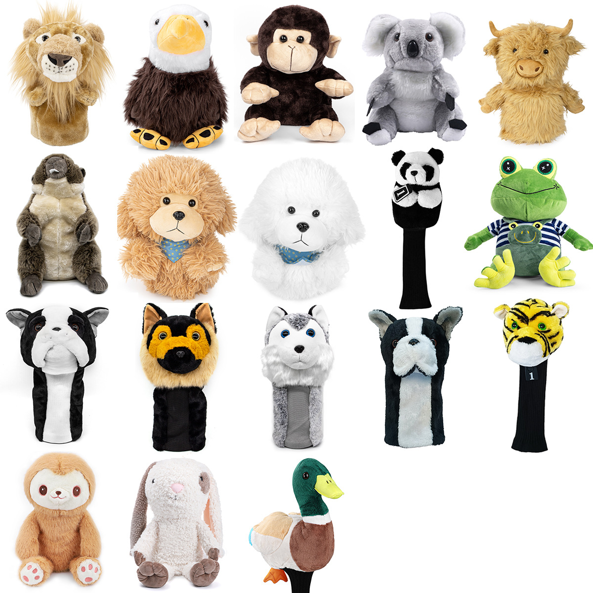 Penutup berbagai macam tongkat golf hewan No. 1, sarung pelindung kepala tongkat golf kartun lucu