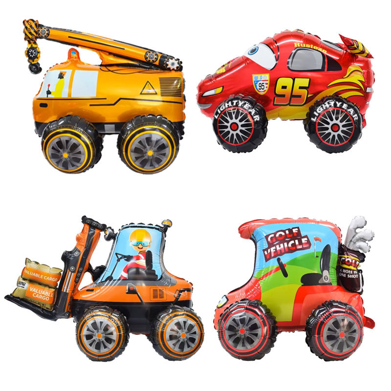 Cross-border 3D berdiri Teknik Kendaraan McQueen mobil merah forklift golf cart crane ulang tahun aluminium film balon