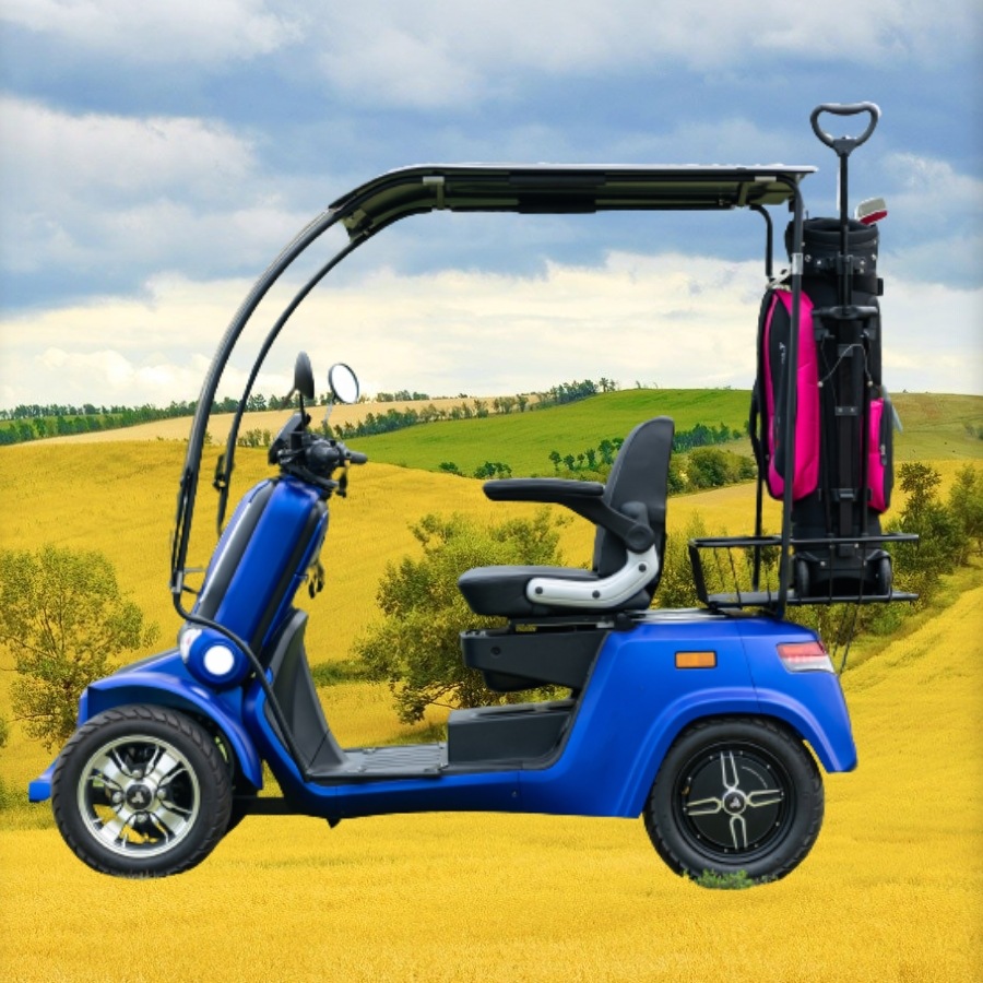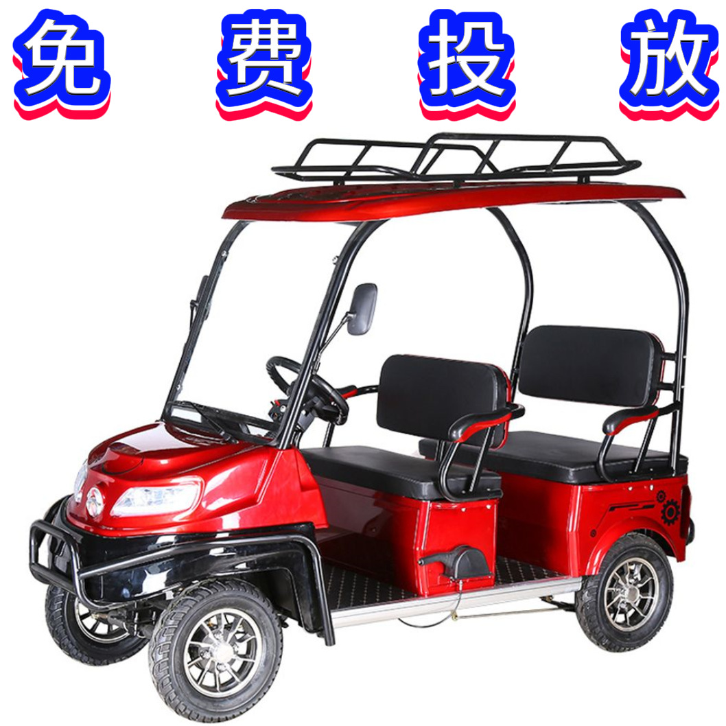 Skuter listrik empat roda orang tua, mobil golf mobil baterai pandangan titik pemandangan dengan gudang, sewa 2 orang 4 kursi