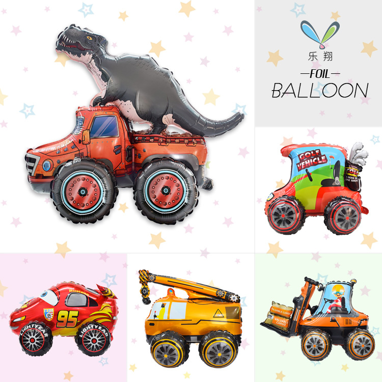 Crossborder Hot Sale Merakit Tombol Dinosaurus Berdiri Konstruksi Mobil Film Aluminium Balon McQueen Mobil Forklift Dekorasi Pesta