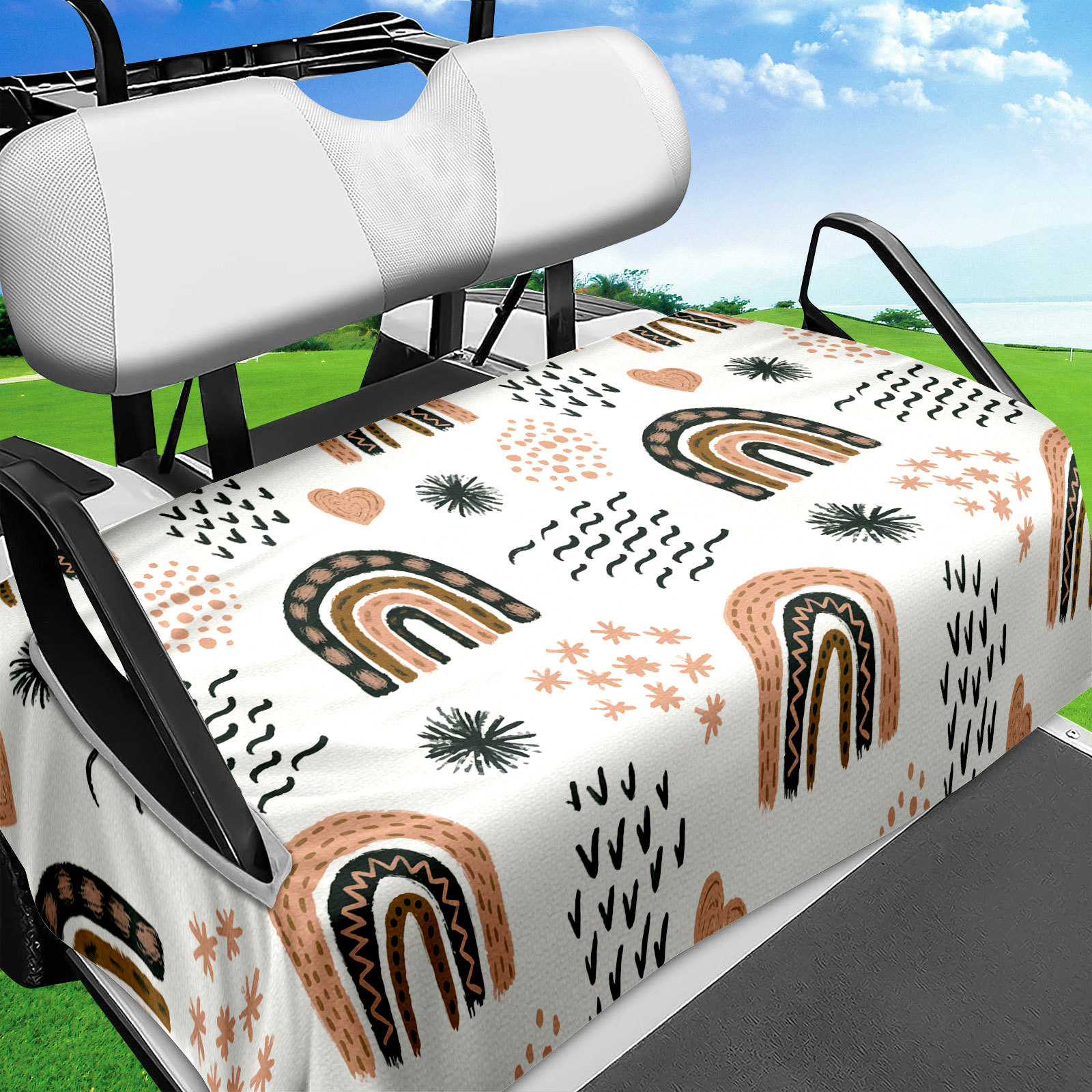 Sarung bantal kereta Golf, penutup kursi tamasya, penutup pelindung microfiber seri pelangi