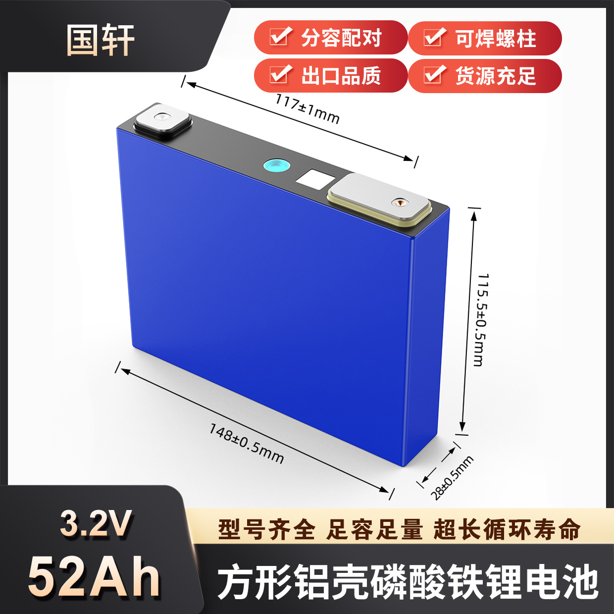 Guoxuan baru 3. 2v52ah baterai lithium besi fosfat sel daya energi surya penyimpanan energi listrik baterai 12V