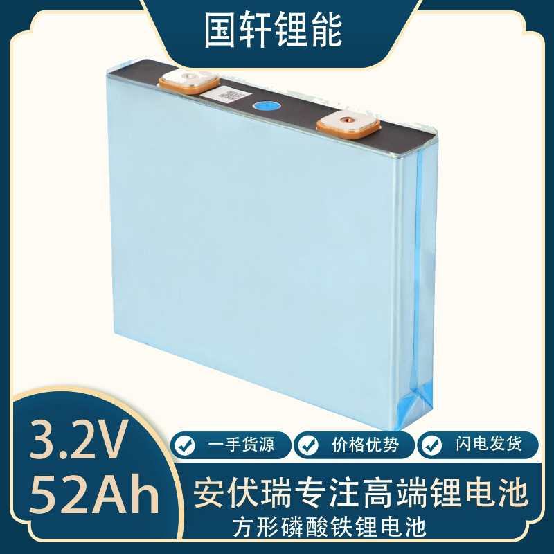 Guoxuan baterai lithium besi fosfat 52Ah, Penyimpanan Energi kendaraan elektrik daya 3.2V cangkang Aluminium sel fotovoltaik surya