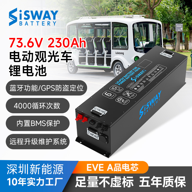 Kemasan baterai lithium mobil wisata 73.6v baterai Keranjang golf 230ah Taman Bermain baterai lithium besi fosfat Baterai BMS
