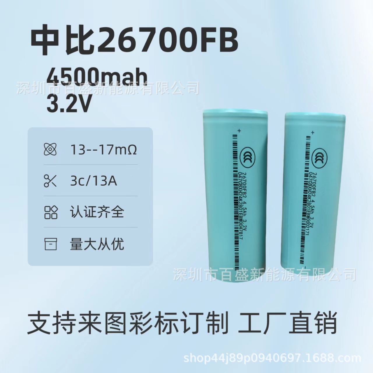 Baterai lithium iron phosphate 3.2v Bic 26700 FB 4000mah, 4500mah 3c daya tinggi