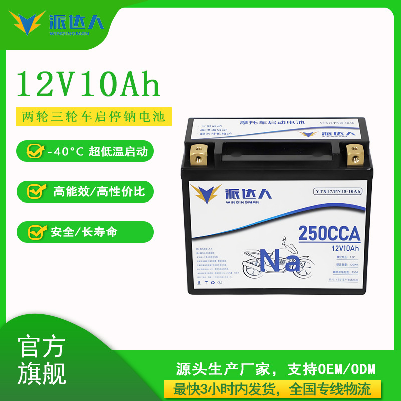 12V10Ah Baterai Startup Sepeda Motor Roda Dua PN10 Sepeda Roda Tiga Menghentikan Baterai Sodium Baterai Anti Listrik