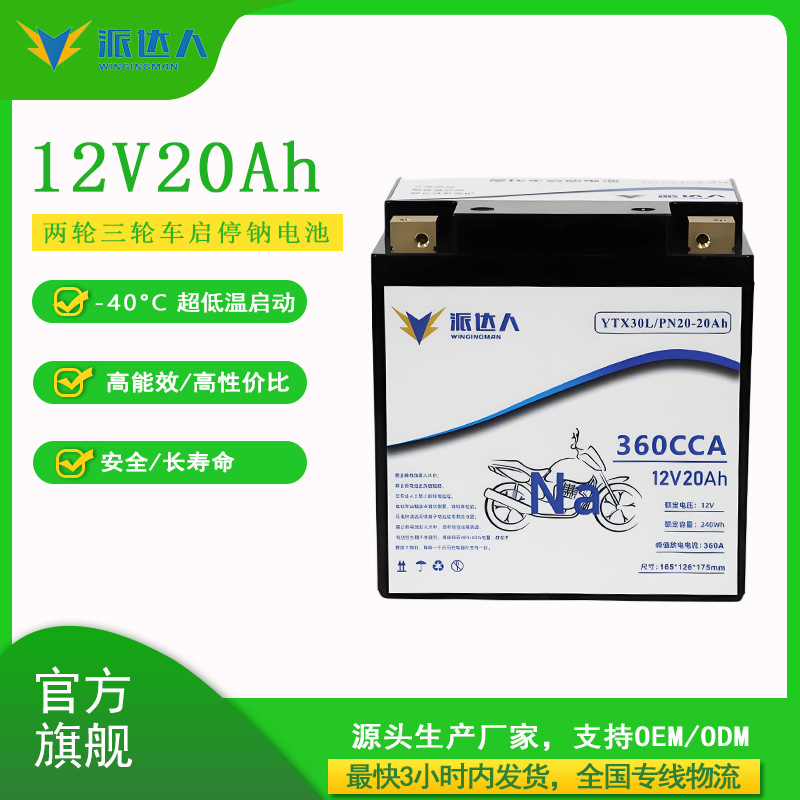 12V20Ah Baterai Roda Tiga Roda Dua Mulai Stop Baterai PN20 Baterai Sodium Dapat Mulai dari 40 Derajat Anti Listrik