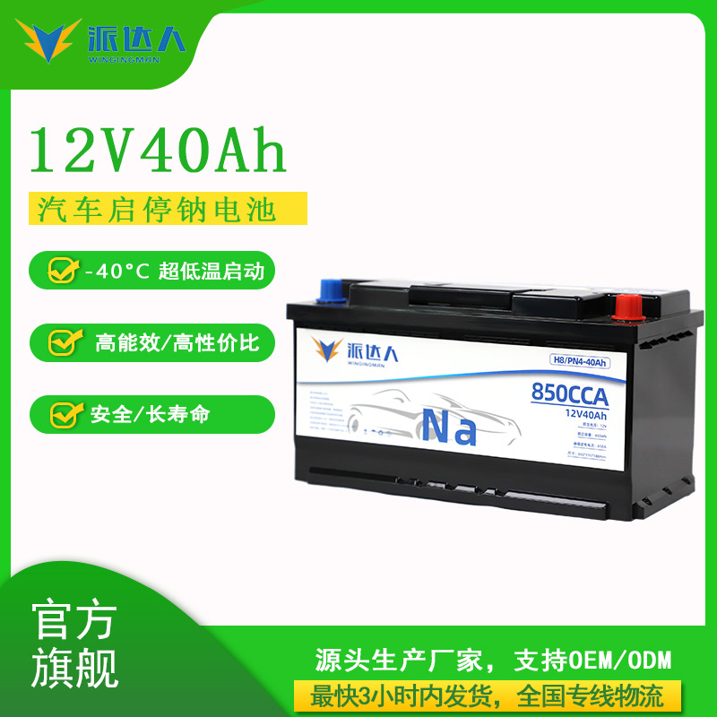 12V40Ah anti-loss listrik dimulai, baterai padam, H8-PN4 ion natrium, mobil mulai baterai tahan suhu rendah