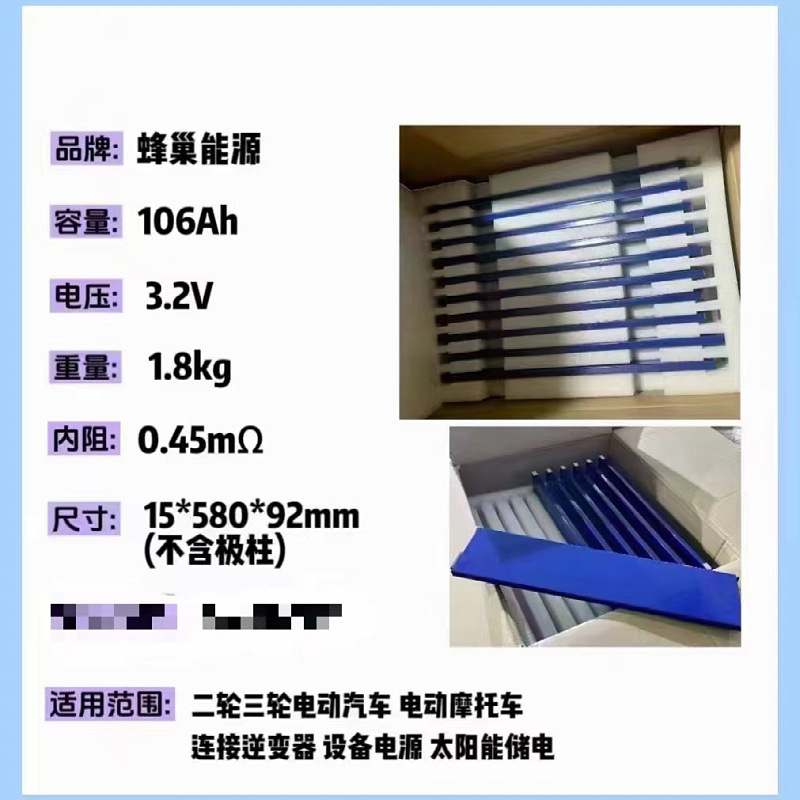 Sarang lebah 106AH besi lithium fosfat 3.2V bilah aluminium penyimpanan energi daya monomer besar inti baterai lithium daya baterai lithium