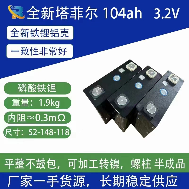 Baterai lithium besi tafeir 104AH, cangkang aluminium fosfat besi lithium 3.2V, penyimpanan energi daya monomer besar, inti baterai produk A