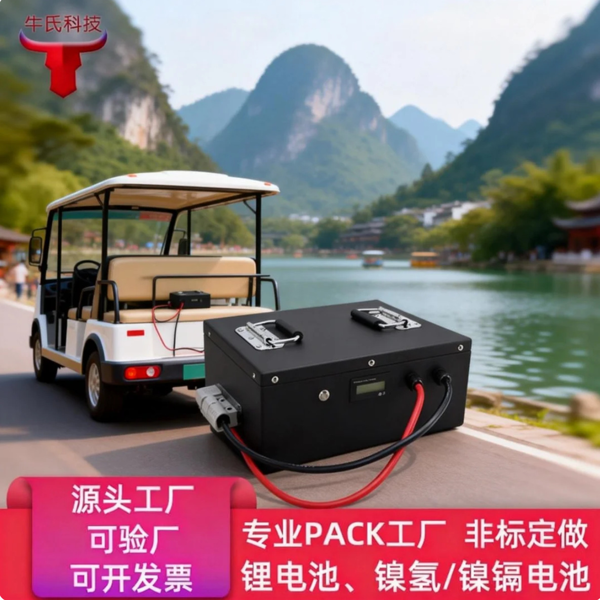Baterai lithium besi fosfat 48v, Keranjang golf 100AH, baterai lithium mobil patroli empat roda wisata elektrik