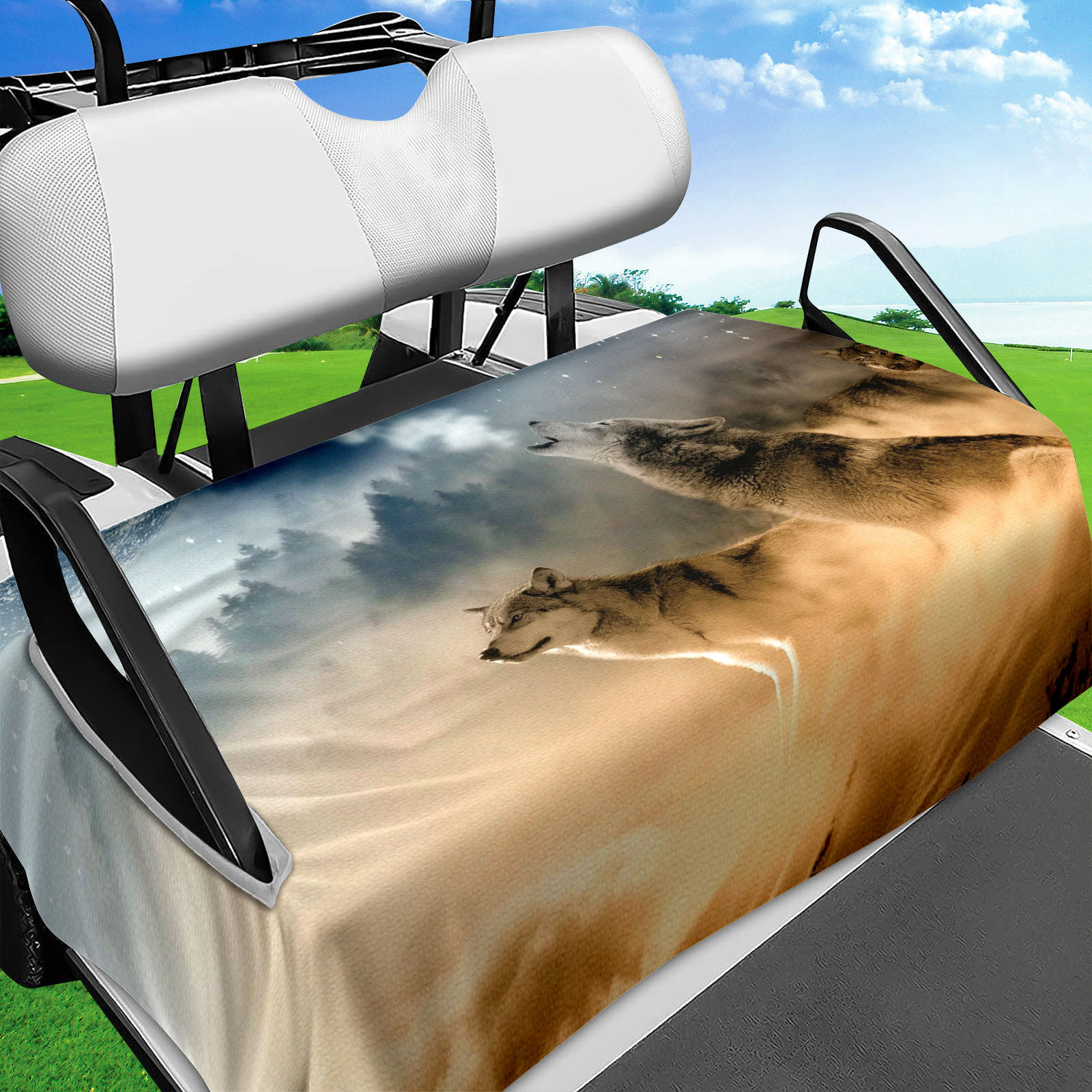 Sarung jok Keranjang Golf, selimut handuk tempat duduk mudah dibersihkan dan dipasang gaya serigala warna-warni