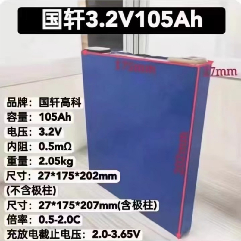Guoxuan 105AH baterai lithium besi fosfat, penyimpanan energi daya 3.2V, baterai lithium monomer besar, ekspor produk inti baterai