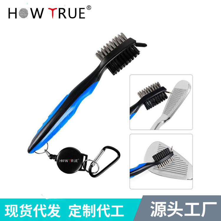 Pasokan langsung pabrik sikat pembersih klub golf baru aksesori golf portabel multifungsi dua sisi dengan cincin tarik