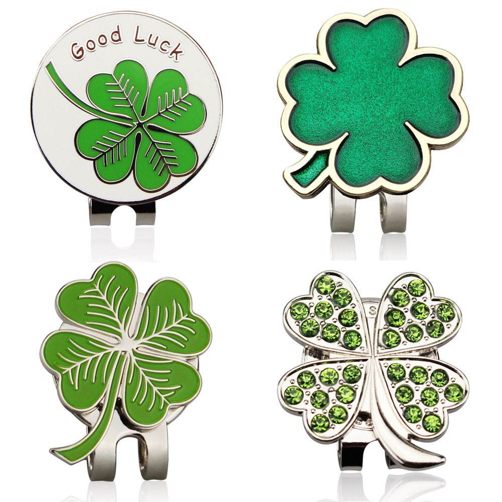 Klip topi logam Golf hijau beruntung empat daun semanggi klip topi laser logo bola logam Aksesori tag