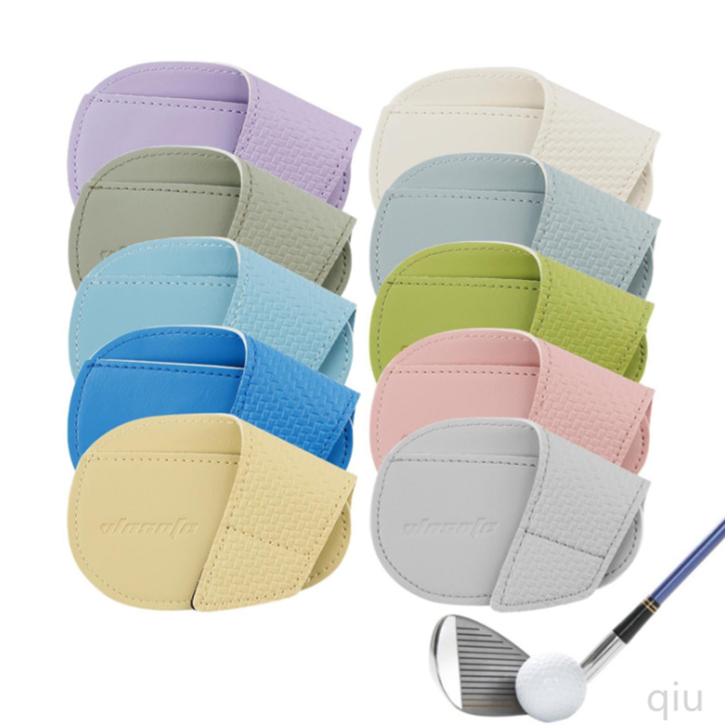 Sarung klub golf uf kulit anyaman, pelindung kepala tongkat besi penutup putter kulit pu warna