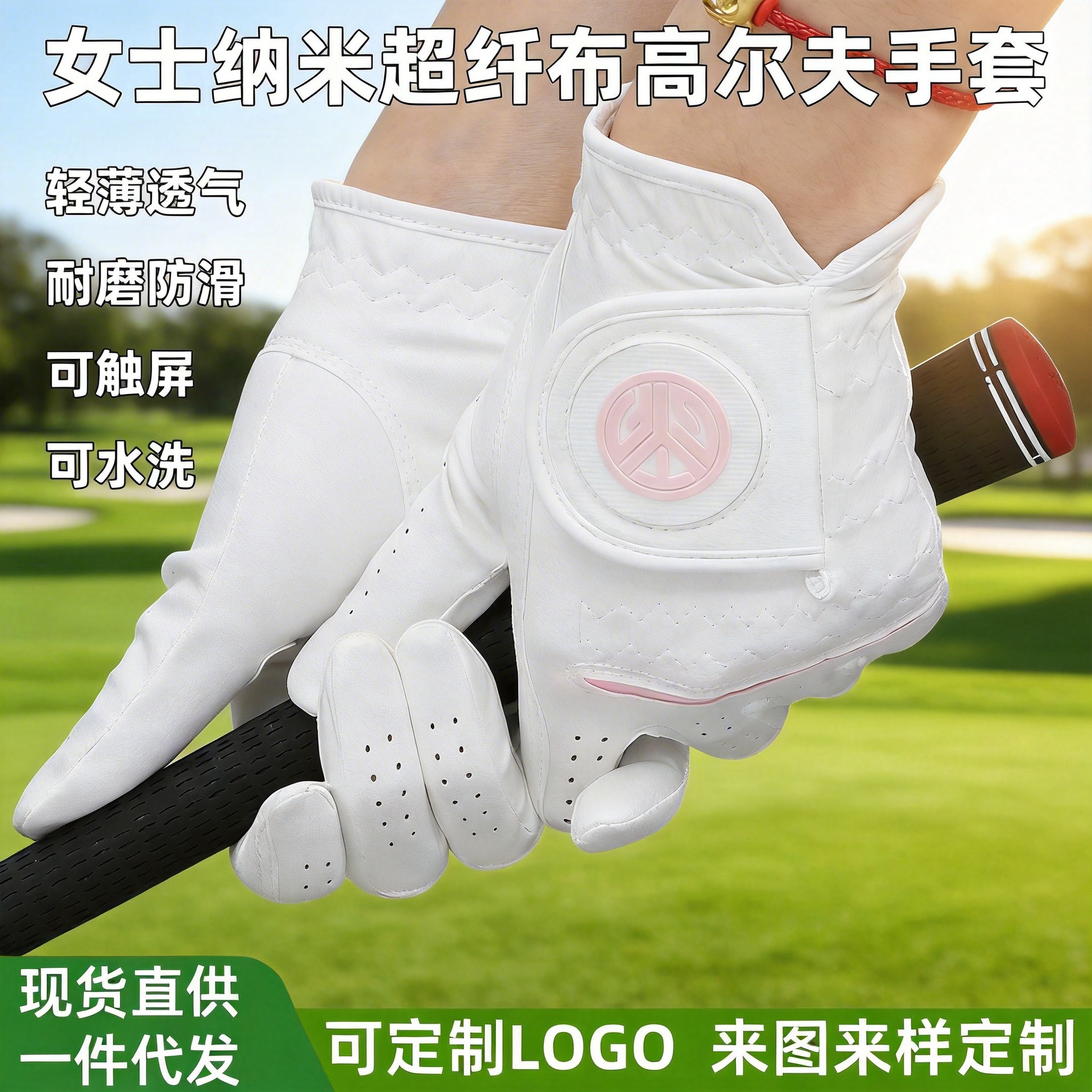 Sarung tangan Golf wanita, serat mikro pelindung matahari dapat dicuci tahan aus dengan LOGO