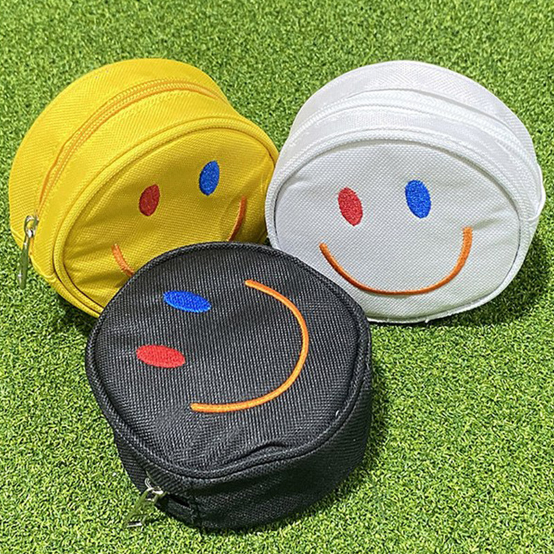 Tas golf pinggang poliester gaya Korea 2024 tas ritsleting wajah tersenyum tas bola kecil portabel