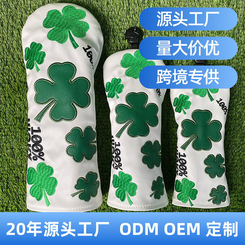 Sarung Batang Golf Produk Baru Aksesoris Sarung Batang Kayu Empat Daun Lucky Satu Set Topi Pelindung Kepala Bola Kayu