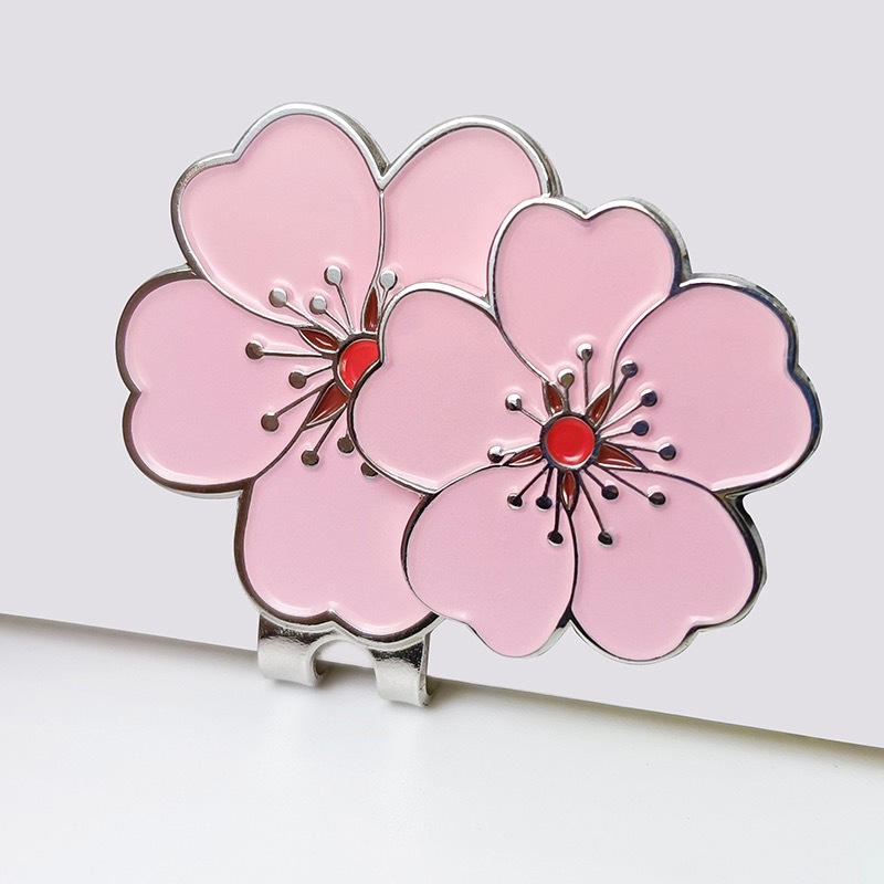 Klip topi golf logam baru tanda klip topi bunga sakura merah muda dengan magnet dengan aksesori klip logo kustom