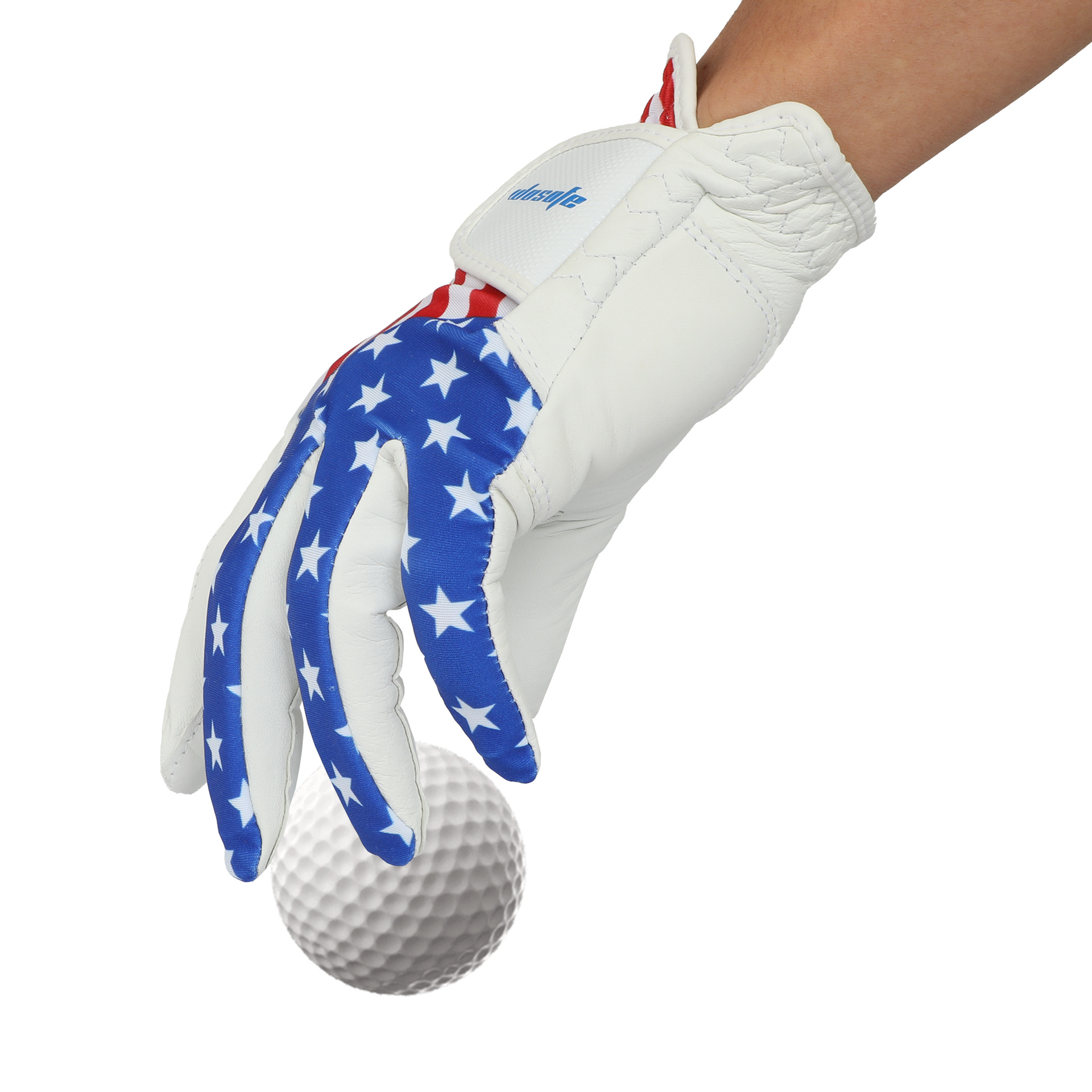 Sarung tangan golf Lycra, sarung tangan kulit domba tangan kiri pria pola bendera Amerika anti selip bernapas