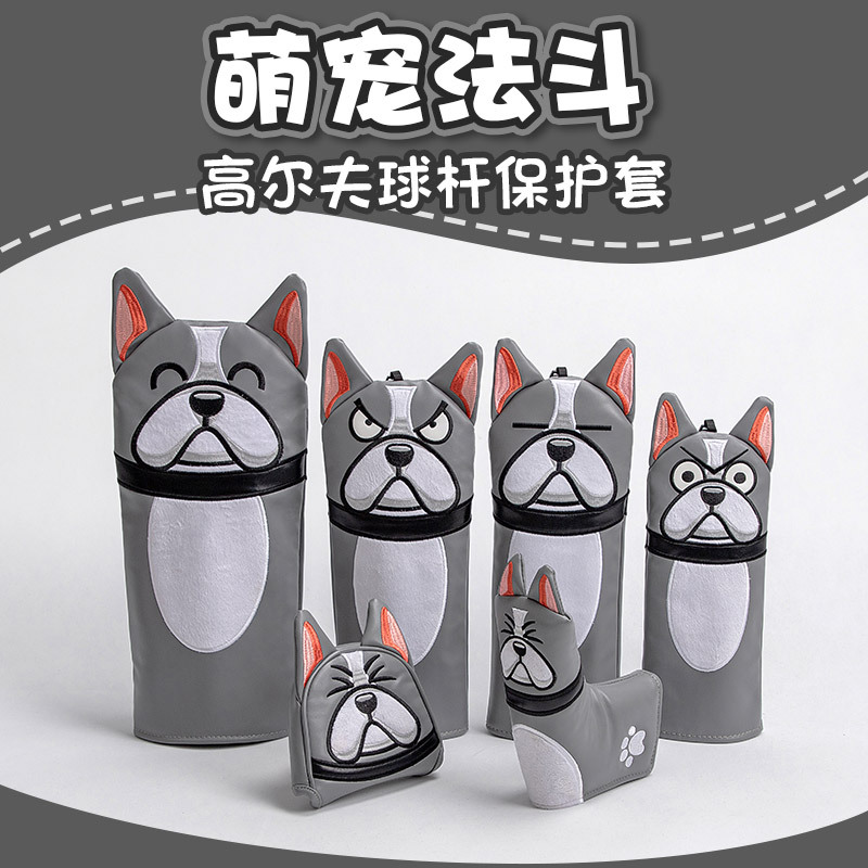 [Penutup klub Golf] 135UT penutup tiang kayu setengah lingkaran penutup putter lurus penutup topi PU anjing Bulldog