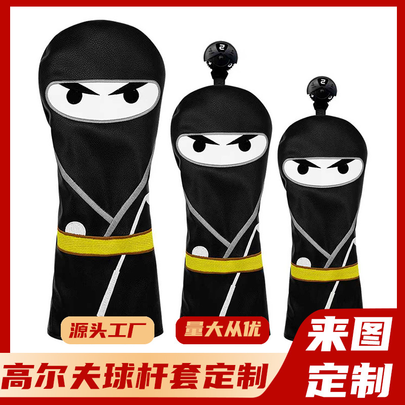 Penutup kepala tongkat golf kreatif ninja hitam pelindung kepala tongkat aksesoris tongkat ayam penutup tongkat kayu universal
