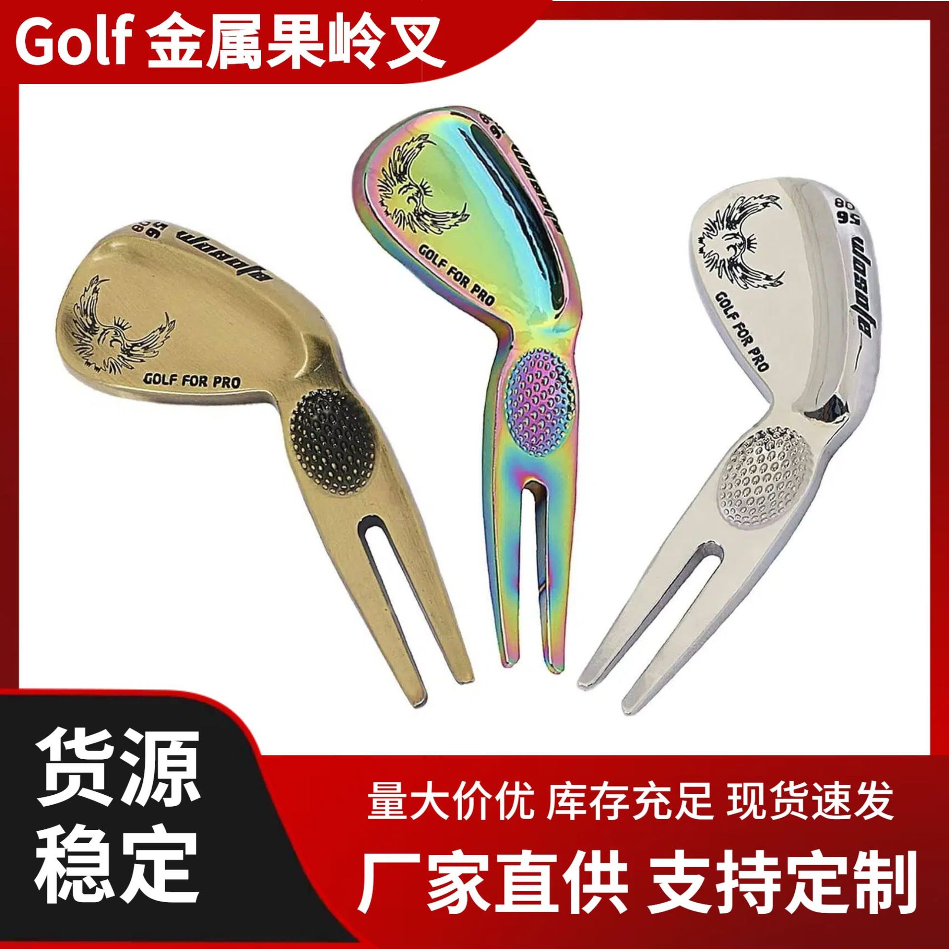 Alat perbaikan bentuk stik golf berbahan logam, garpu pemangkas dari paduan seng, aksesoris garpu hijau dari paduan seng