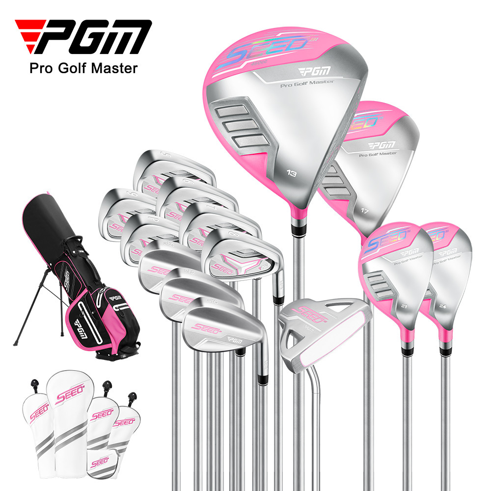 PGM klub Golf wanita set lengkap tas teleskopik, set tongkat Golf serat karbon ringan rebound tinggi titanium No. 1 batang besi kayu