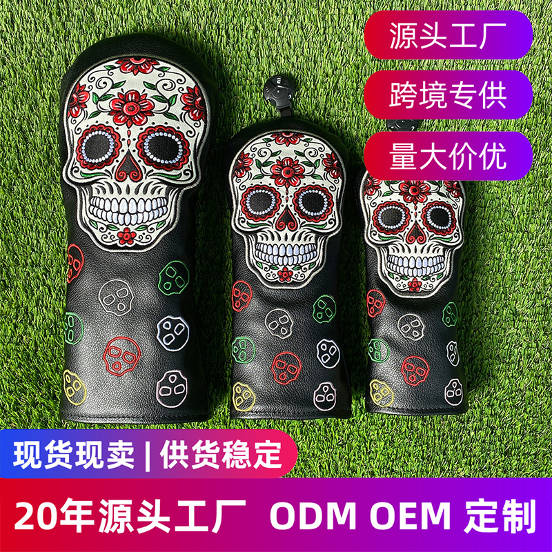 Sarung Topi Klub Golf Sarung Pelindung Besi Pola Horor Kepala Tengkorak Mawar Aksesoris Batang Ayam Kecil Set Batang Kayu