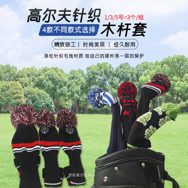 Set tiang kayu rajut golf, set tongkat pelindung kepala klub wol 1/3/5 3 1 set 4