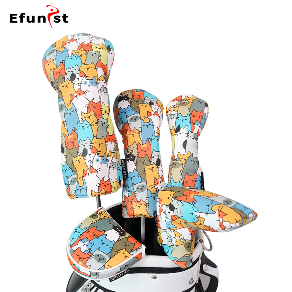 Sarung Tiang Bola Golf Sarung Tiang Kayu Model Kucing Graffiti Set Tiang Tiang Topi Pelindung Model Setengah Bulat Kayu Bentuk Lurus Kayu 1 Jalur Kayu