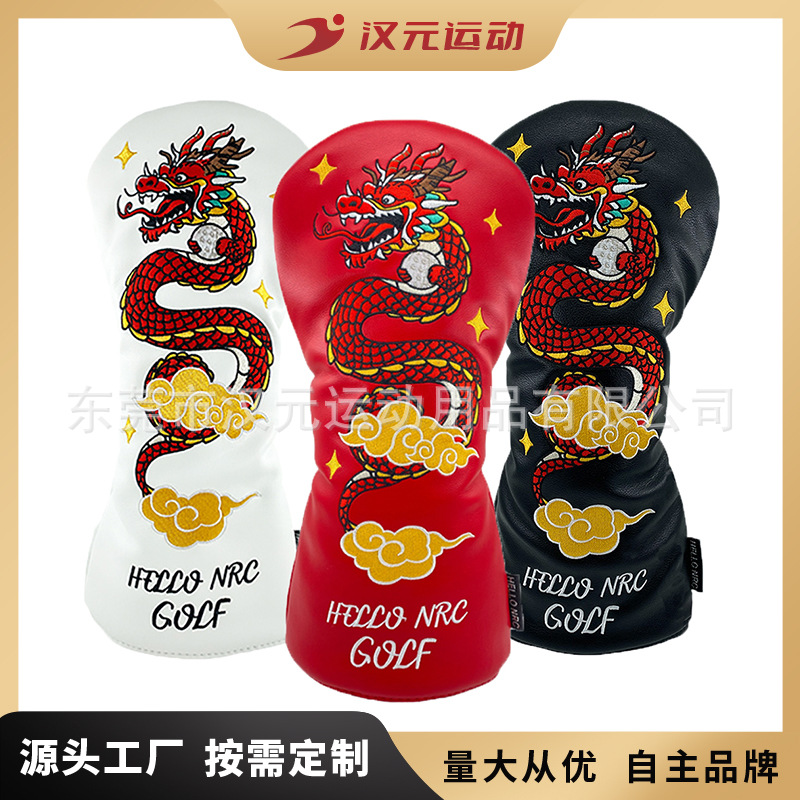 Produsen Lintas Batas Grosir Model Baru Set Batang Golf Set Batang Kayu Set Kepala Batang Golf PU Merah Naga Cina