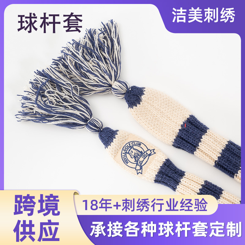 Sarung Rajutan Tiang Golf Lintas Batas Set Wol Olahraga Luar Ruangan Set Pelindung Kepala Bola Pola Kualitas Tinggi