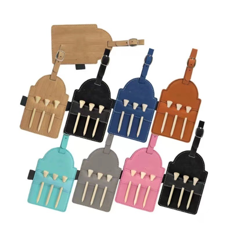 Sarung kulit pemegang kuku golf luar ruangan tag golf portabel logo cetak tag kuku golf