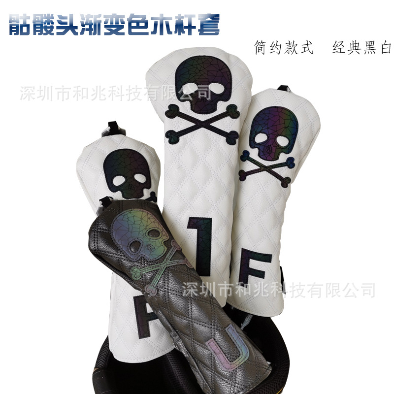 Sarung putter Golf, pelindung kepala stik penutup klub setengah lingkaran tengkorak mengkilap