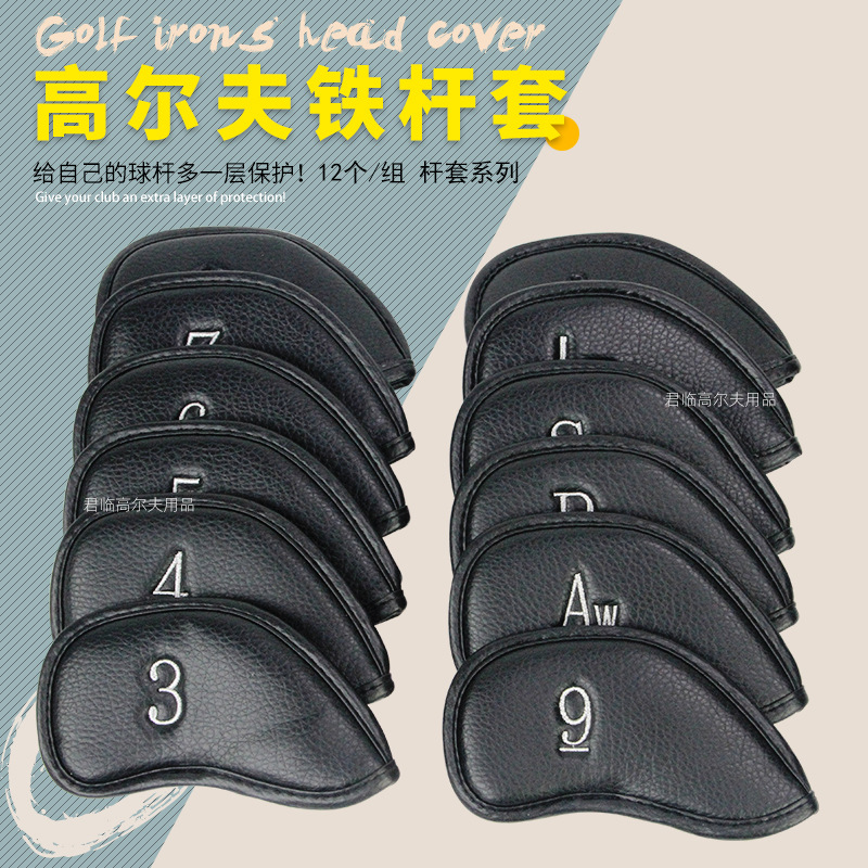 Baru golf besi penutup batang golf besi penutup pelindung tahan air PU kain tongkat golf penutup kepala 12 buah/kelompok
