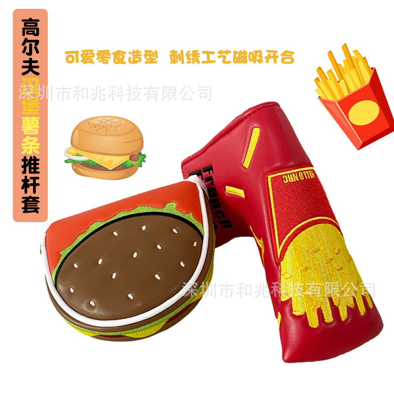 Penutup klub Golf baru kedap air penutup batang tekan magnetik setengah lingkaran lurus goreng hamburger bentuk lucu penutup kepala batang
