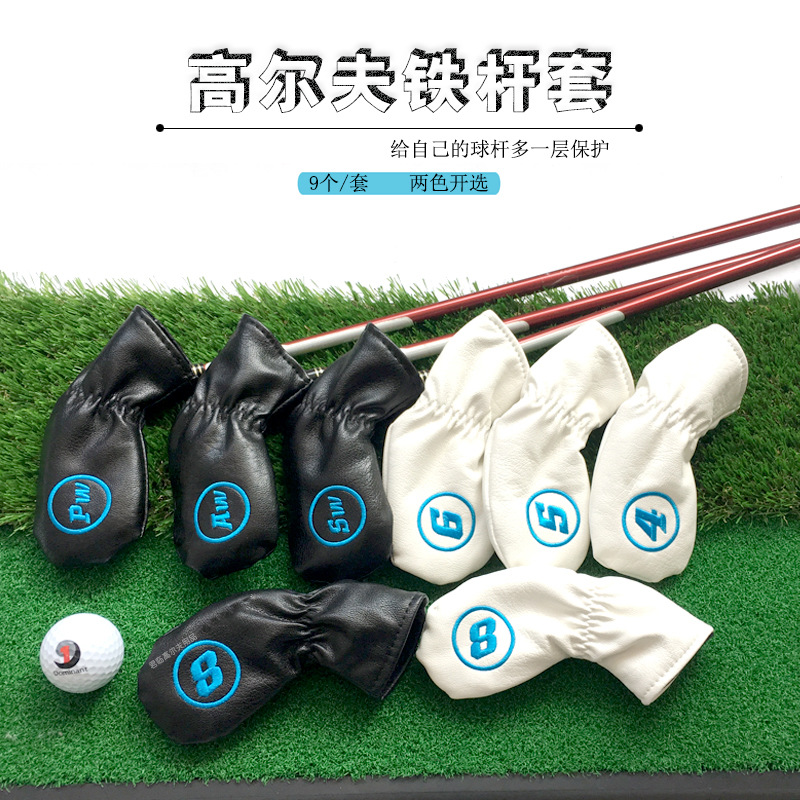 Sarung golf iron club penutup kepala tambalan pelindung digital besar penutup klub golf penutup PU tahan air 9 buah/kelompok