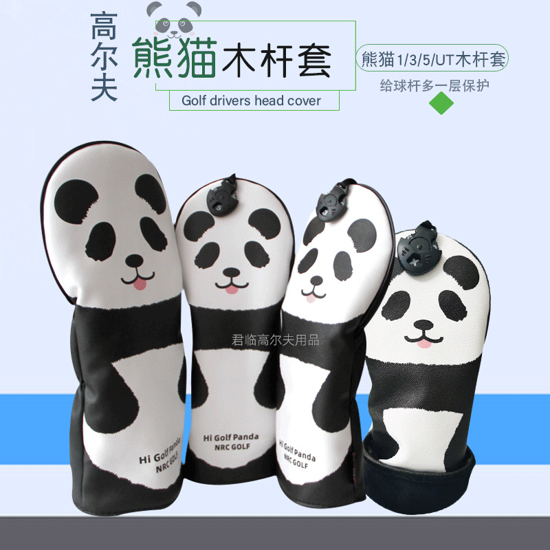 Penutup tiang mewah lintas batas, penutup tiang kayu golf kartun panda pelindung PU tahan air tebal 1/3/5