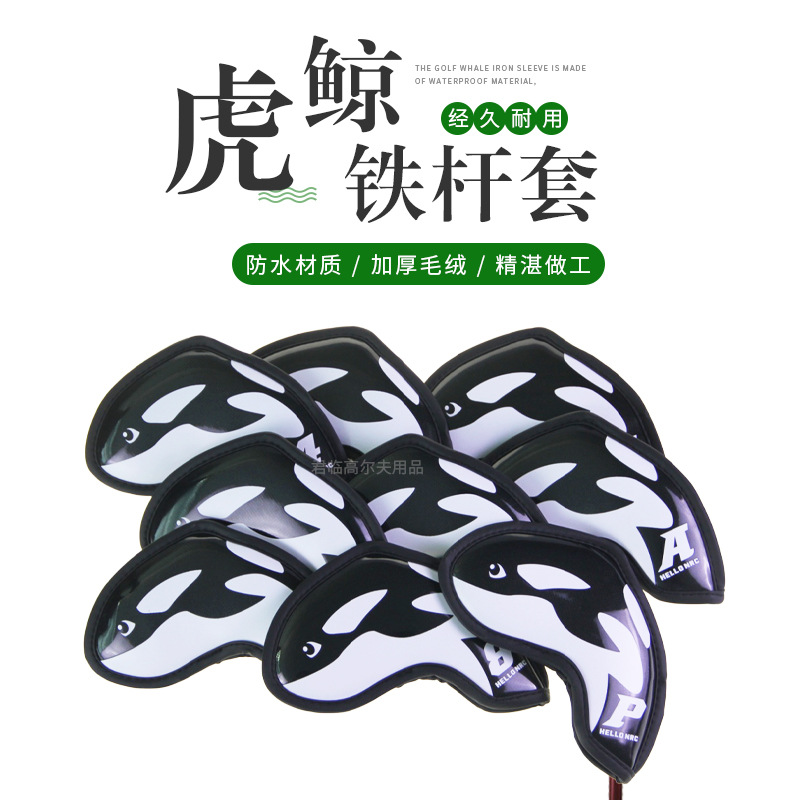 Penutup tongkat besi golf, penutup kepala tongkat golf, pelindung tongkat besi paus, tahan air PU 9 buah/Grup