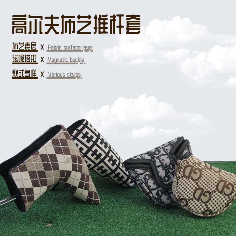 Sarung putter golf, penutup kepala tongkat golf bentuk L setengah lingkaran, pelindung putter pola kain inovatif 4 model