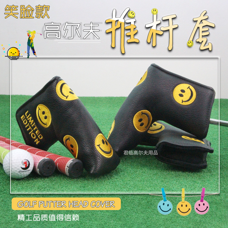 Penutup putter golf, 1-line pola bordir wajah tersenyum Pembuka Velcro tahan air tebal internal PU tahan lama