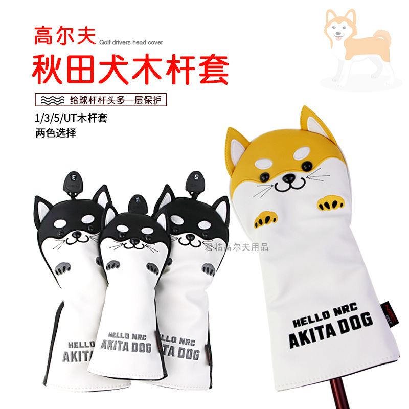 Golf Akita penutup tiang kayu anjing, tutup kepala tongkat bordir hewan kartun PU 1/3/5/UT Club