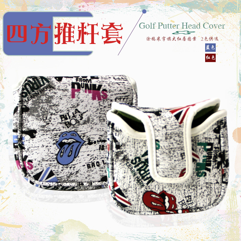 Baru penutup putter golf grafiti pola litchi PU tahan air tebal penutup pelindung tongkat persegi 2 warna pilihan