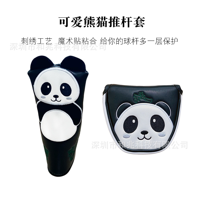Penutup tongkat Golf, penutup putter setengah lingkaran, batang lurus, pelindung kepala, Magnet tertutup gaya panda