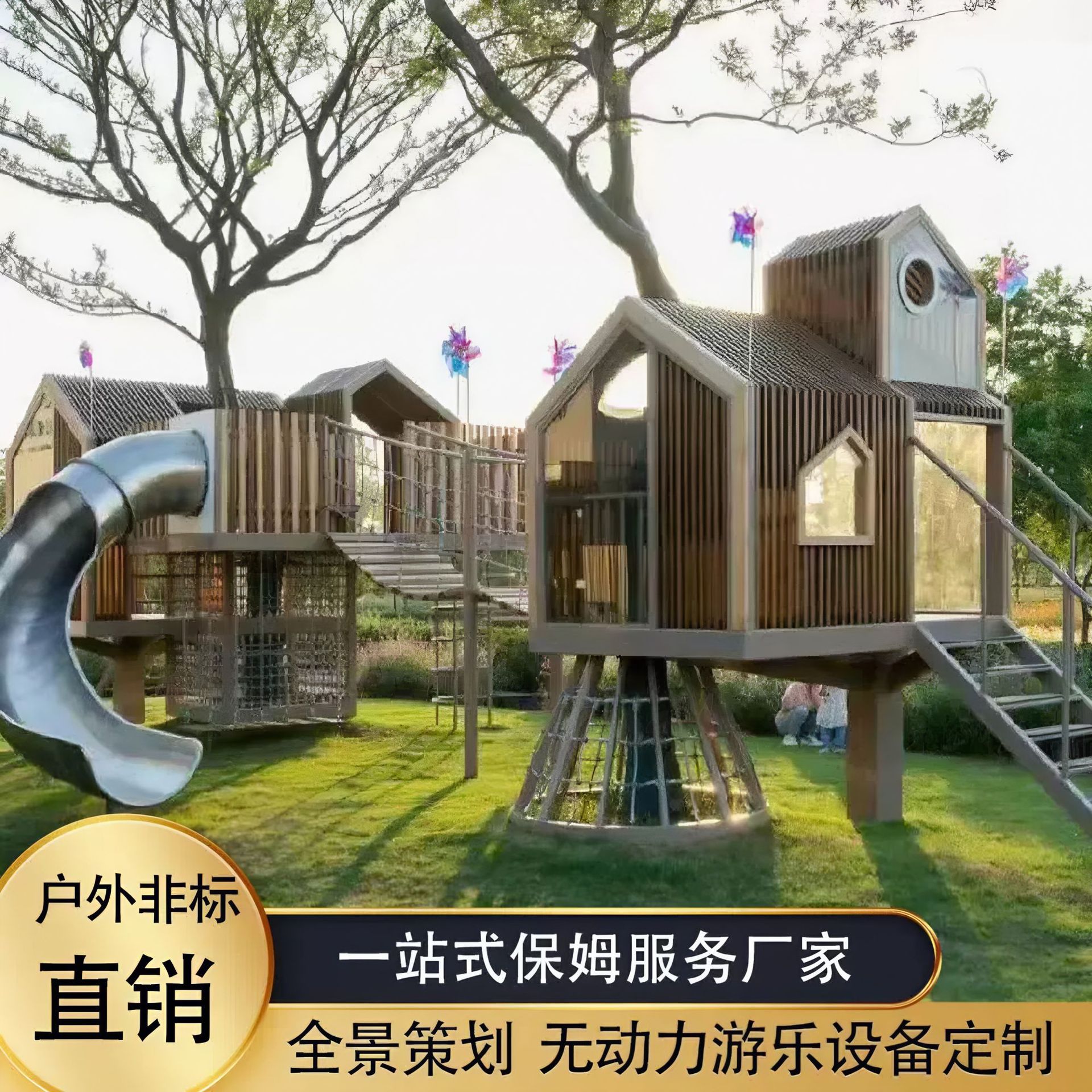 Taman Kanak-Kanak Luar Ruangan Besar Rak Galeri Kayu Kombinasi Seluncuran Kayu Peralatan Bermain Tidak Berstandar