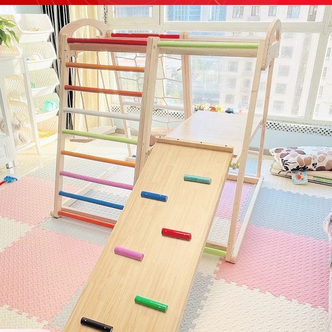 Rak Panjat Dalam Ruangan Anak-anak Peralatan Olahraga Taman Hiburan Rumah Bayi Kombinasi Geser Slide Kecil Kayu Solid