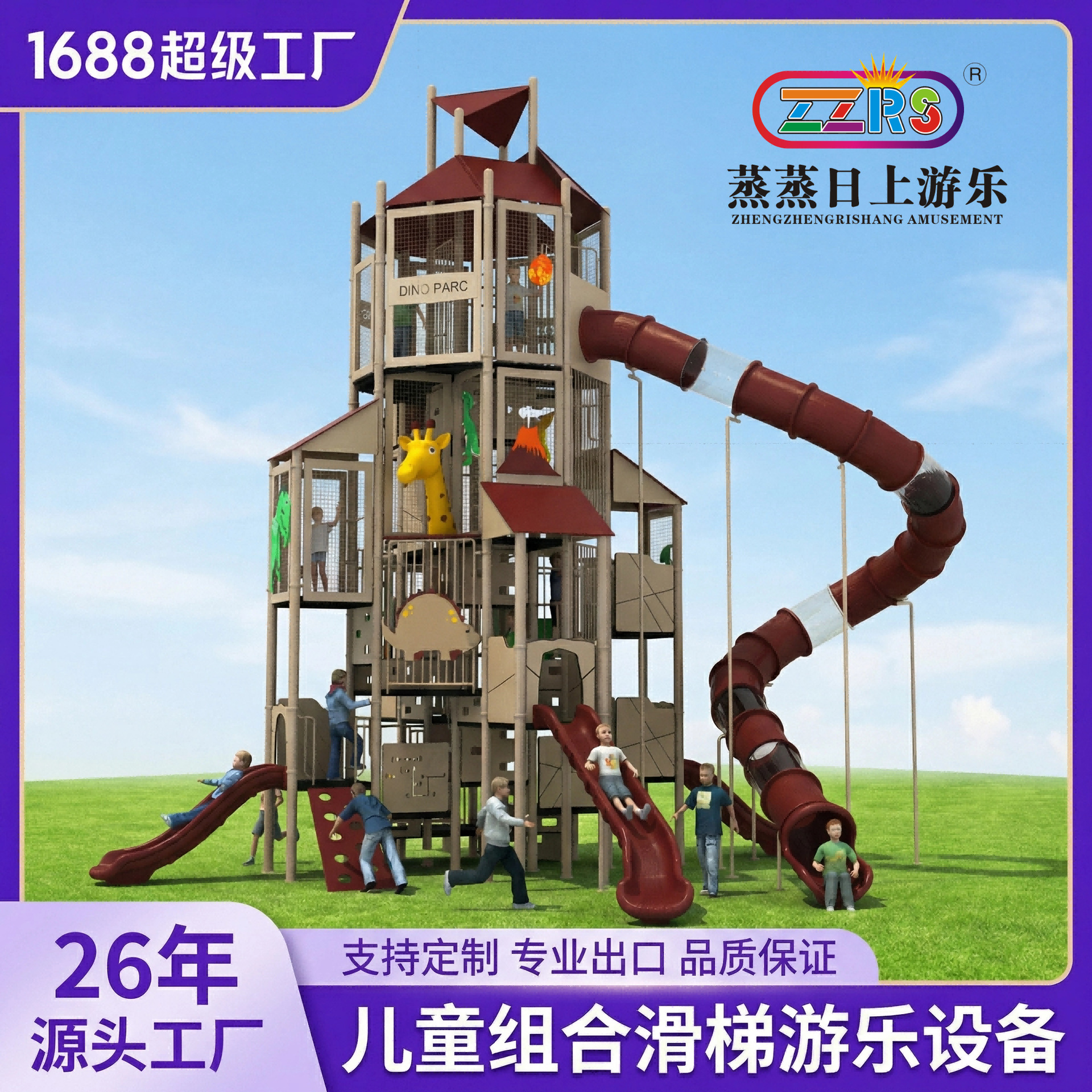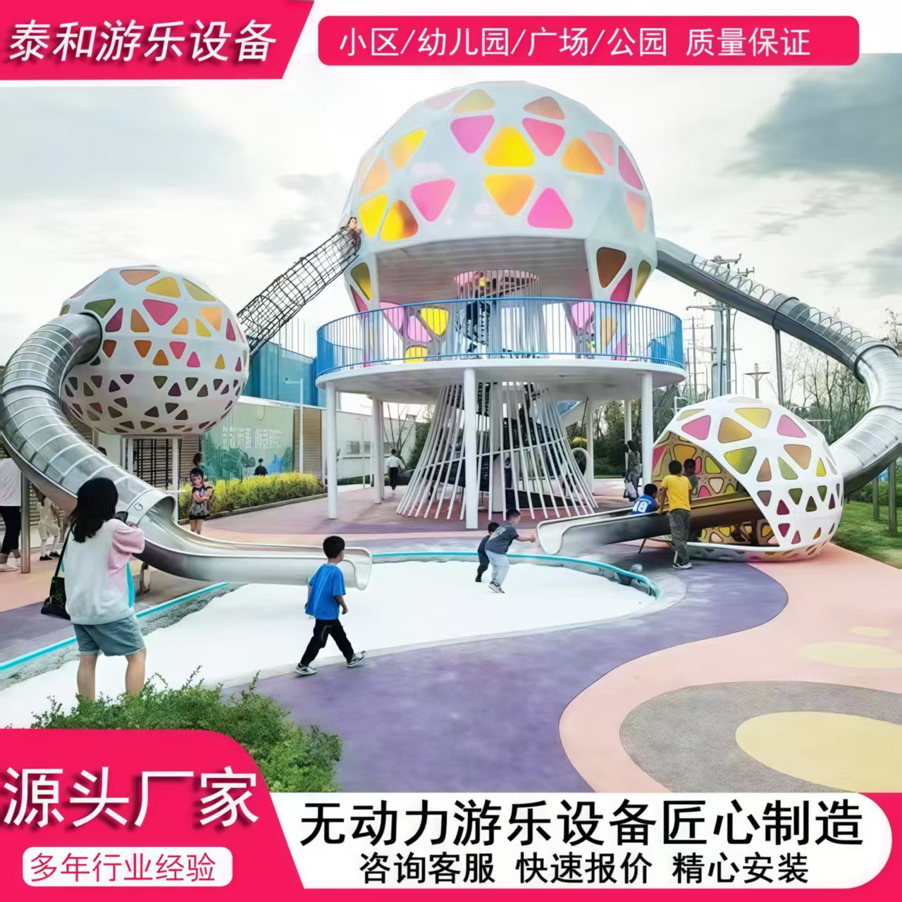 Kombinasi seluncuran dan ayunan luar ruangan skala besar untuk perdagangan luar negeri, fasilitas seluncuran ruang angkasa buatan khusus oleh produsen.
